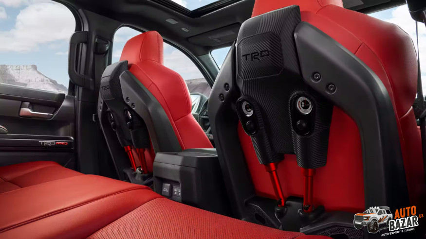 С 18-дюймовыми легкосплавными дисками TRD Pro, 33-дюймовыми шинами Goodyear Territory R/T, тиснением на задней двери и классической передней решеткой — это стиль TRD Pro, продуманный до мельчайших деталей.